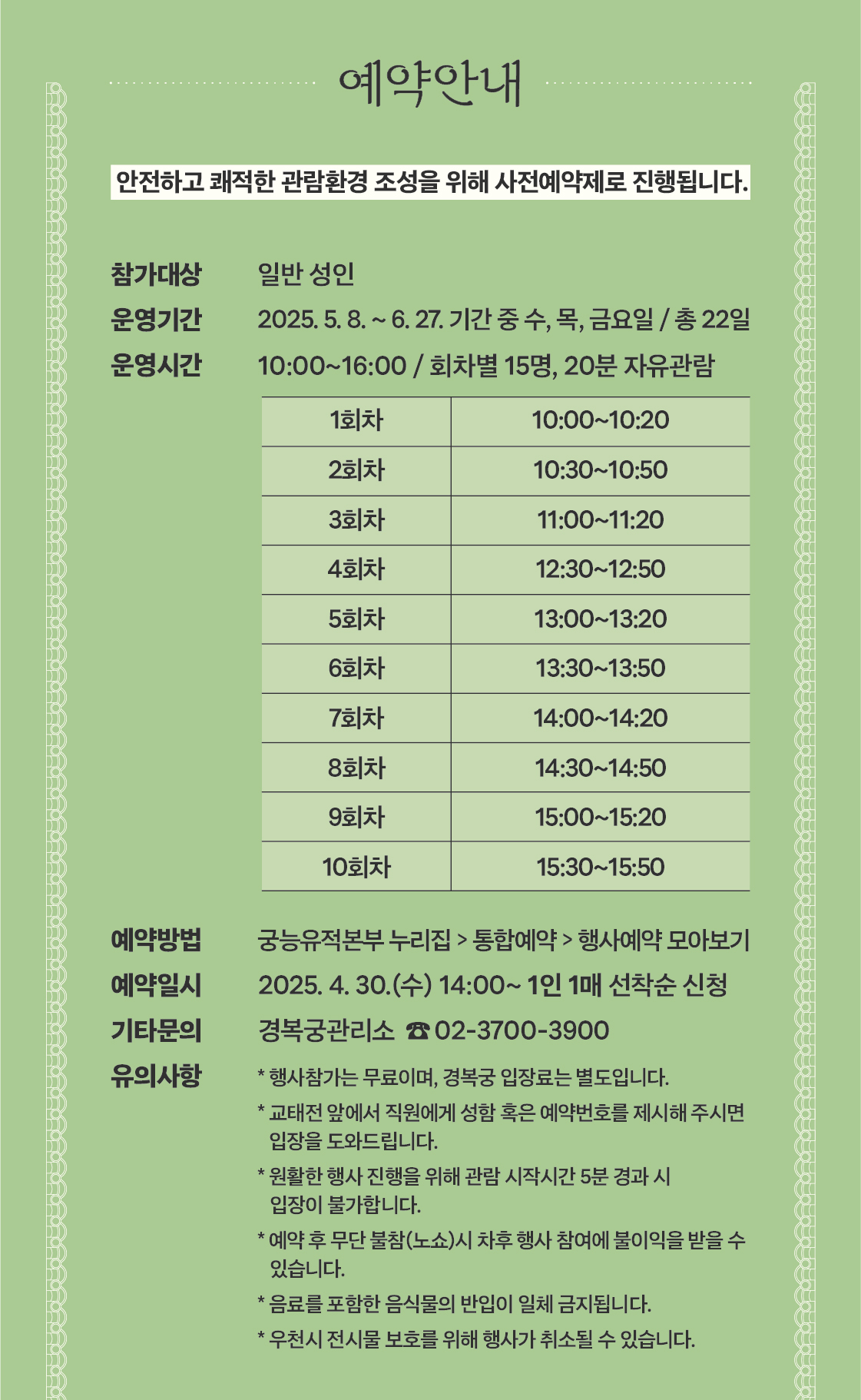 - 예약 시작: 2025년 4월 30일(수) 14:00부터