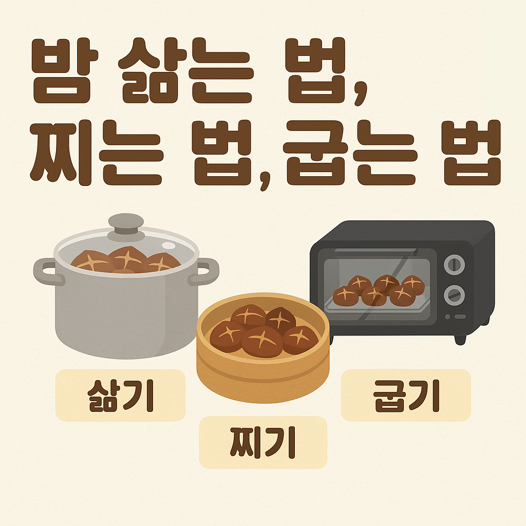 이제 밤의 종류와 취향에 따라 삶기, 찌기, 굽기 중 가장 맛있는 방법을 선택하여 즐거운 간식 시간을 만들어보세요!