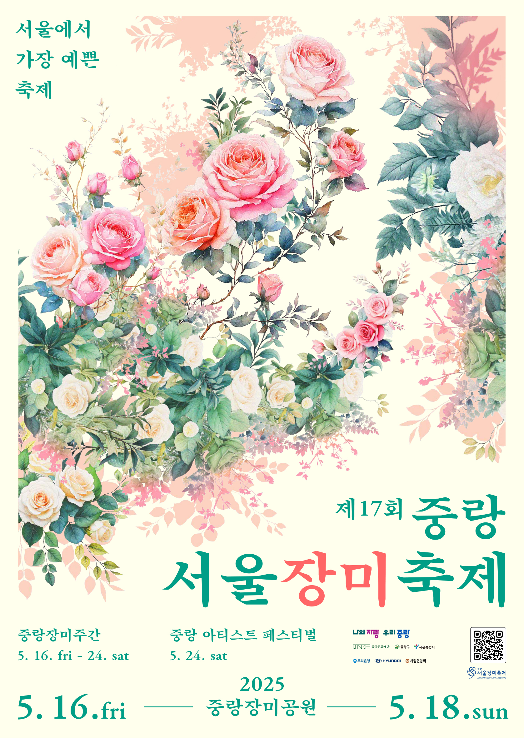 도심 속에서 즐기는 가장 낭만적인 봄 축제, 2025 중랑 서울장미축제가 2025.5.16.(금) ~ 5.24.(토) 9일간 중랑천에서 열립니다.