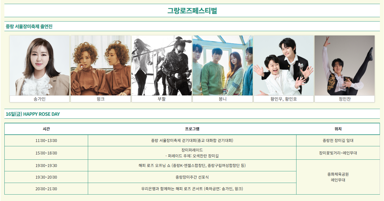 [5.19~5.24] 중랑장미주간: 지역축제+생활문화 중심
