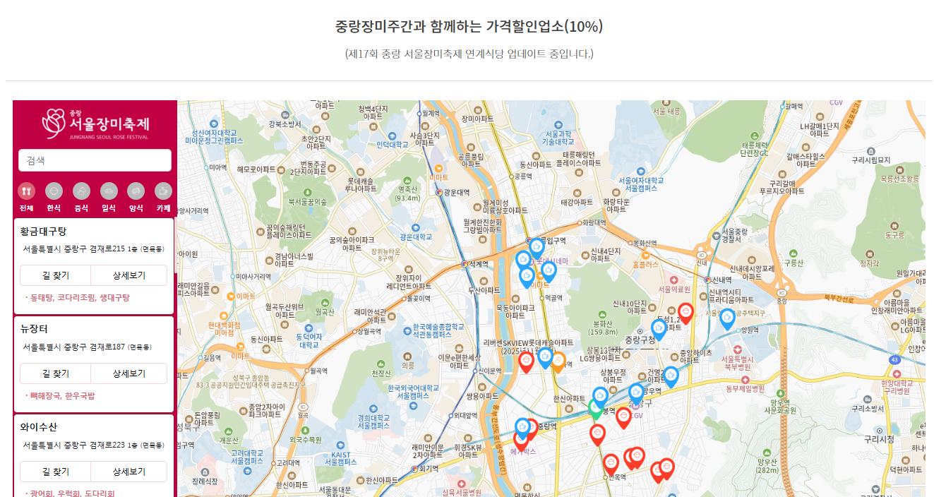 중랑장미주간 동안에는 지역 식당과 연계 할인 이벤트도 있어요!