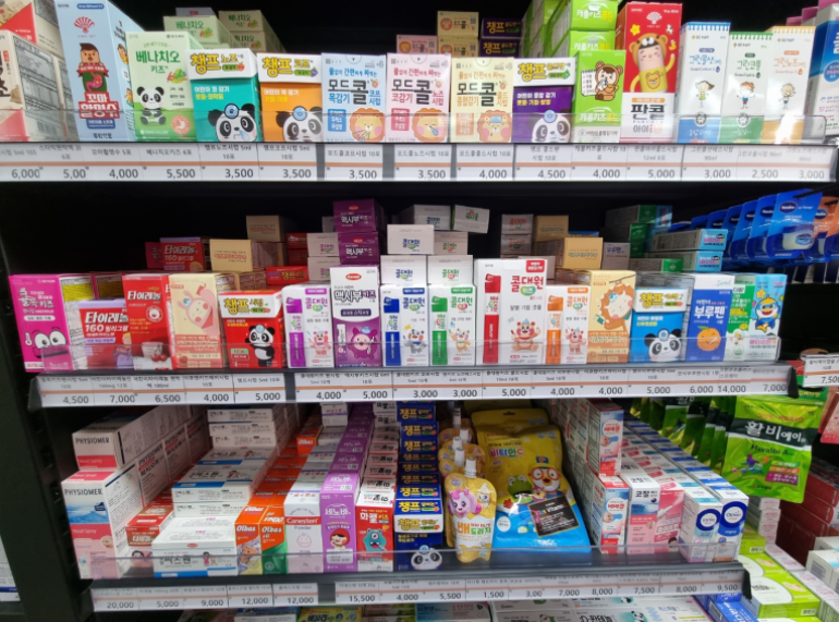 • 감기약, 해열진통제, 파스류, 소화제 등 상비약 등 비타민·루테인·오메가 3 같은 건강기능식품도 다양하게 있습니다.