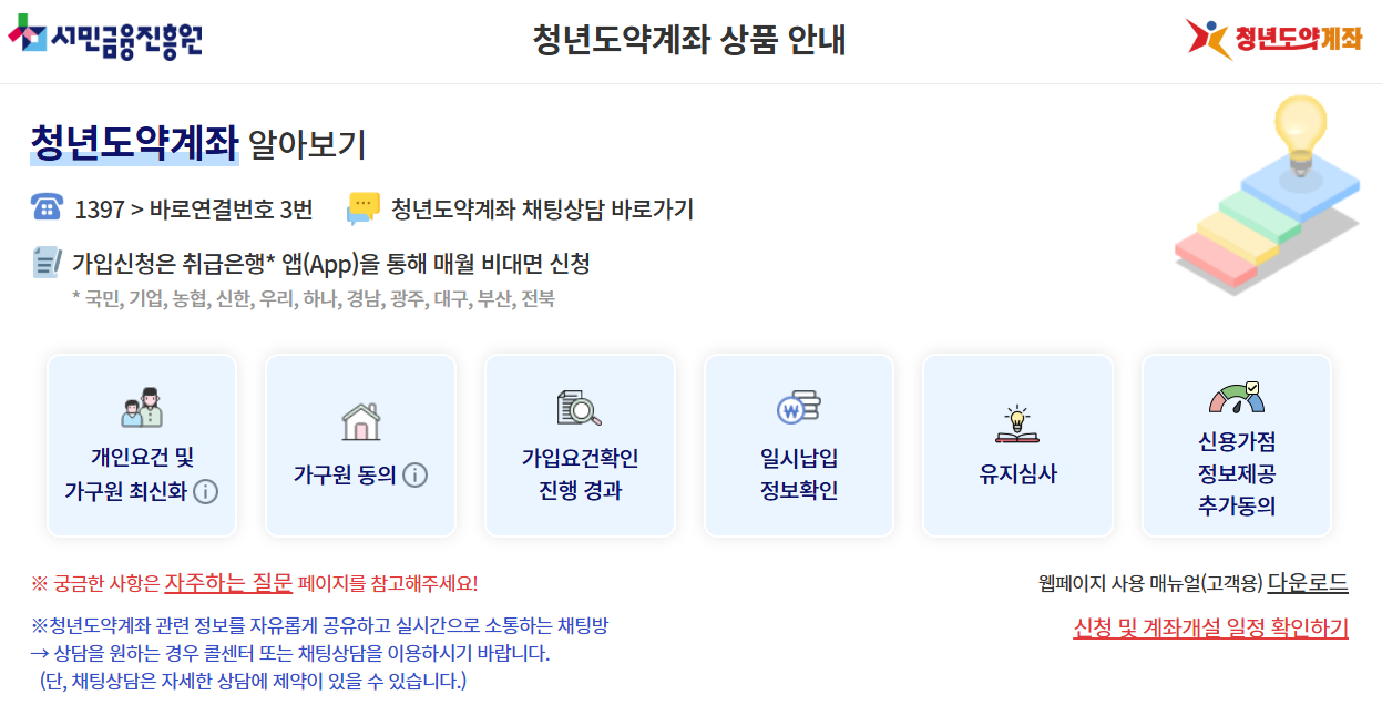 - 청년도약계좌 콜센터: 1397 → 3번