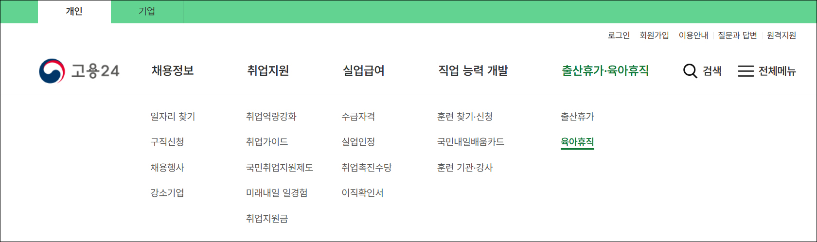 - 개인서비스 > 모성보호 > 육아휴직급여 신청 클릭