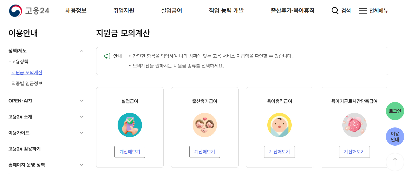 고용 24에서 내 육아휴직급여를 모의계산으로 알아볼 수 있습니다.