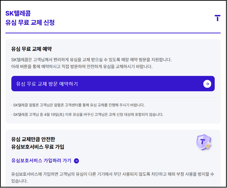 - 예약일에 신분증 지참 후 방문하면 유심 교체 완료!